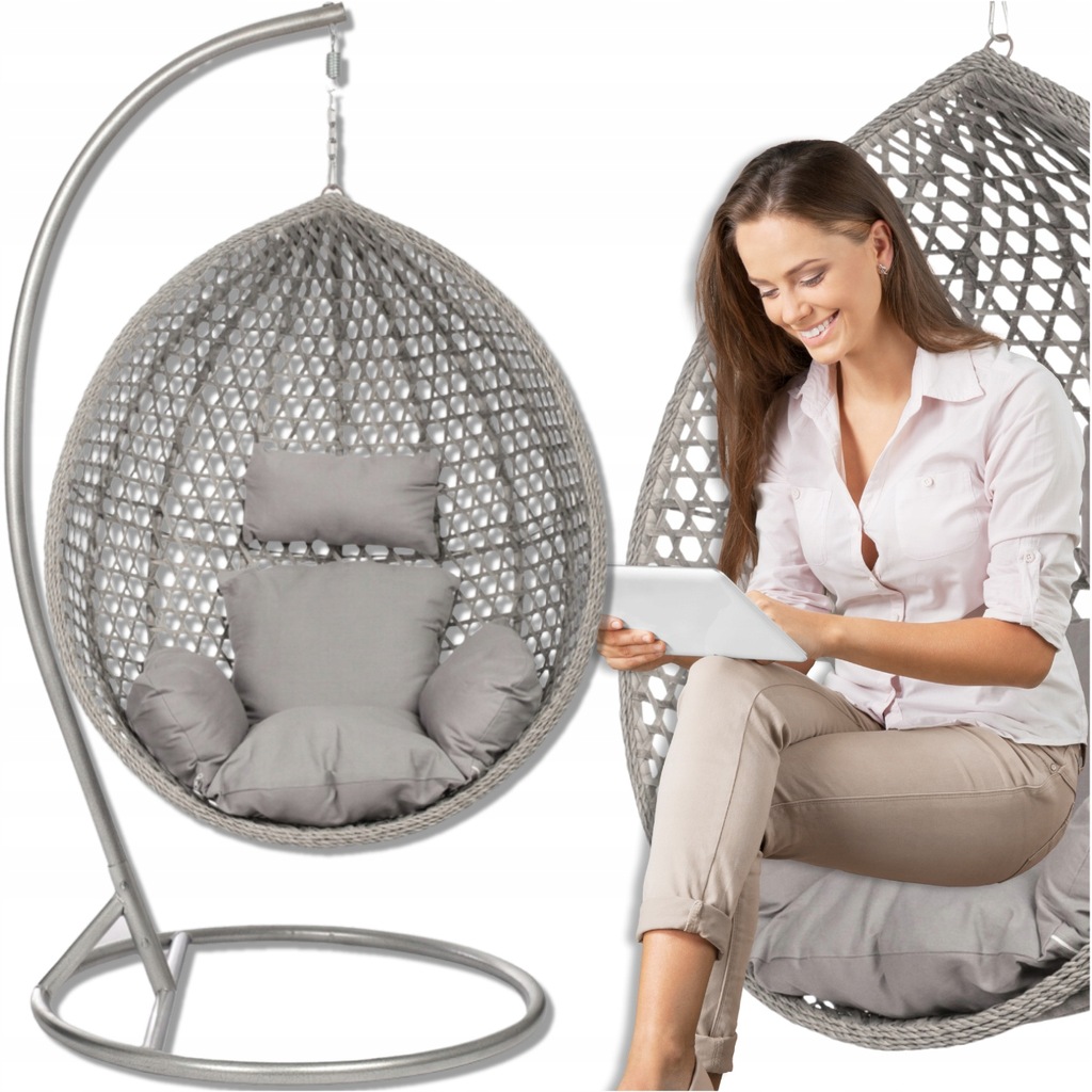 Fotel wiszący XXL ze stojakiem stelażem + poduszki(kolor poduszek taki jak na zdjeciu)