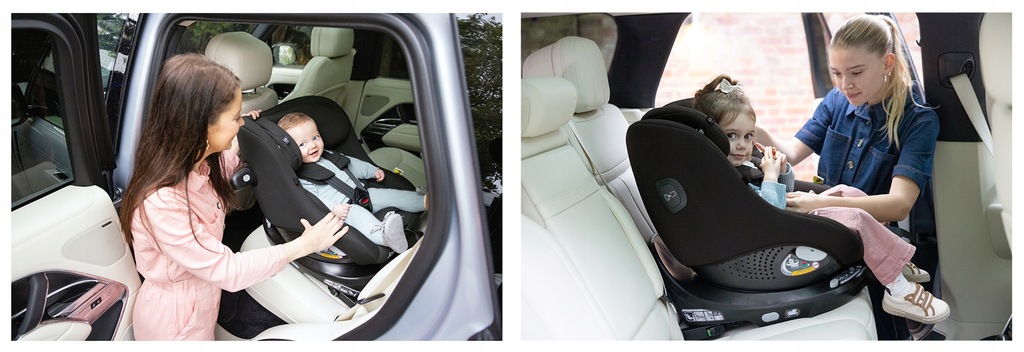 • Obrotowe siedzisko 360° umożliwia łatwe zapięcie dziecka i bezproblemową zmianę trybu instalacji z tyłem na przodem do kierunku jazdy
