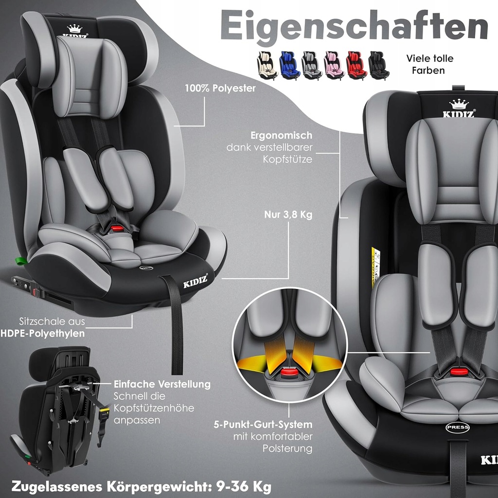 KIDIZ Fotelik samochodowy dla dzieci z Isofix