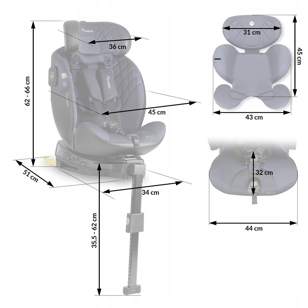 Fotelik samochodowy Nukido Aero Line czarno-granatowy 0-36 kg ISOFIX