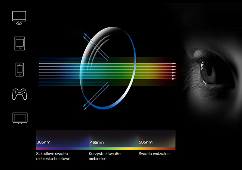 - filtruje szkodliwe niebieskie światło