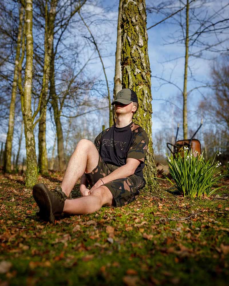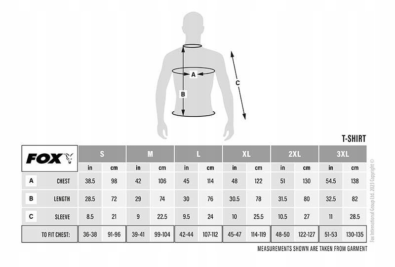 T-Shirt w kolorze czarnym Duże, obrysowane logo Fox Camo na piersiach 100% bawełna 160 g/m2 Dostępne rozmiary S do 3XL Wysokość modela: 5ft 10in/179 cm Obwód klatki piersiowej modela: 40in/101 cm Model nosi: Rozmiar L
