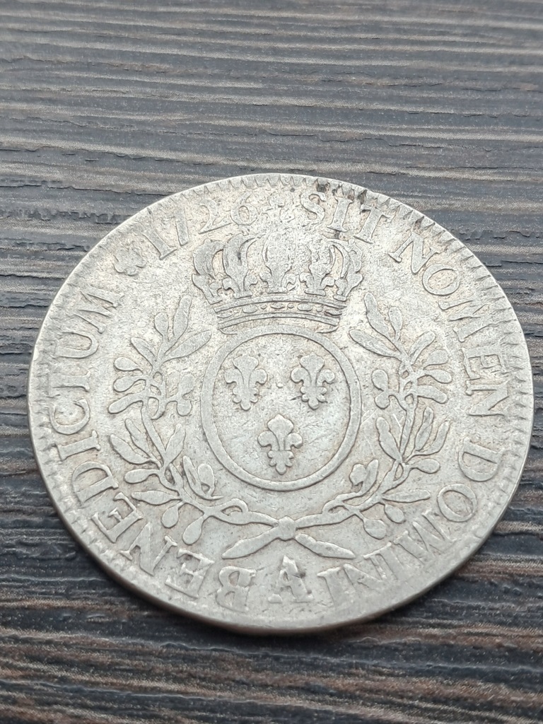Francja, 1 ECU 1726, Ludwik XV, DUŻE, STARE SREBRO