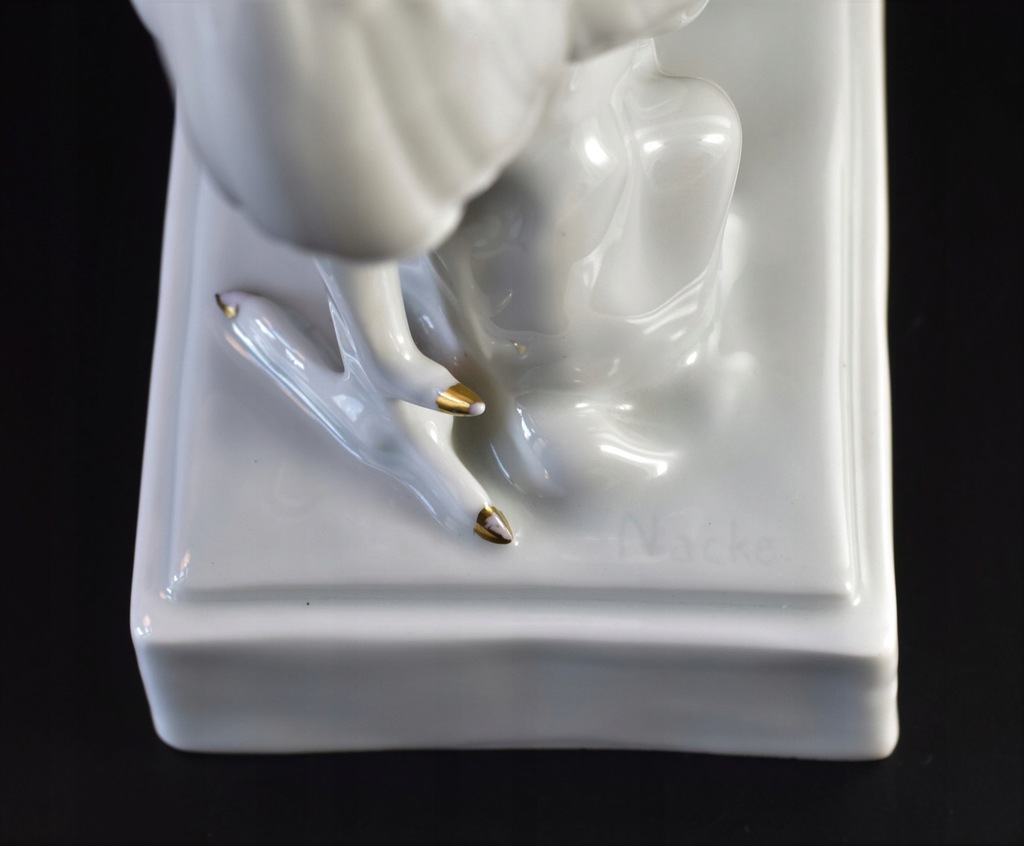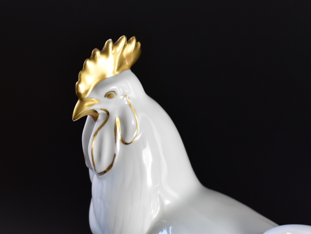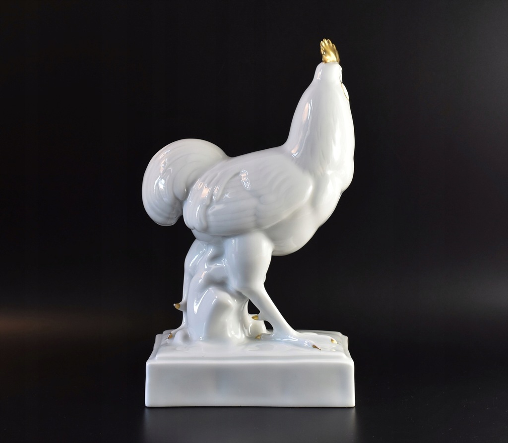 Figurka porcelanowa koguta z niemieckiej manufatury Fraureuth (dział artystyczny). Jest to projekt Carla Nacke, jedego z najbardziej znanych artystów, pracujących dla tej manufaktury.