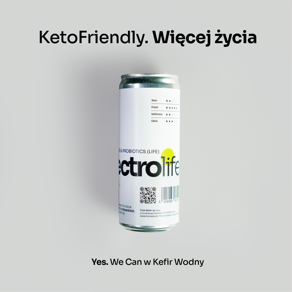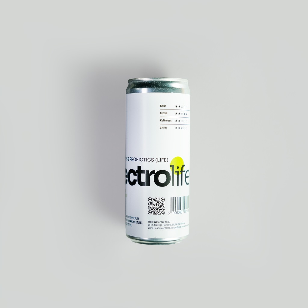 Frest electrolife to funkcjonalny, naturalnie gazowany i niepasteryzowany napój na bazie kefiru wodnego. Jedna puszka 330 ml dostarczy Ci sporą porcję elektrolitów - 150mg magnezu, 300mg potasu, 200mg wapnia i 100mg sodu.