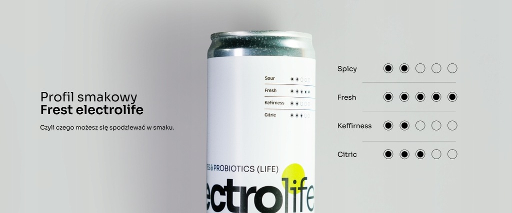 Frest electrolife to pierwszy w Polsce napój, który łączy elektrolity i żywe kultury bakterii. Sam kefir wodny ma niezwykle rozbudowaną mikroflorę. Jej skład dominują bakterie Lactobacillus, które wpływają na regulację mikrobioty jelitowej, wspierają układ pokarmowy, stymulują odporność oraz wpływają na samopoczucie i zdrowie psychiczne poprzez tzw. oś mikrobiota-jelita-mózg. Razem z elektrolitami, Frest electrolife zadba więc kompleksowo o Twój organizm.