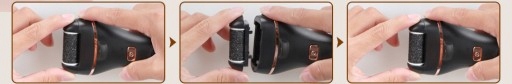 Demontaż jednym kliknięciem, łatwa wymiana głowicy szlifierskiej. Dotknij bocznego przycisku i delikatnie pociągnij głowicę szlifierską, aby wyjąć wałek w celu wymiany.