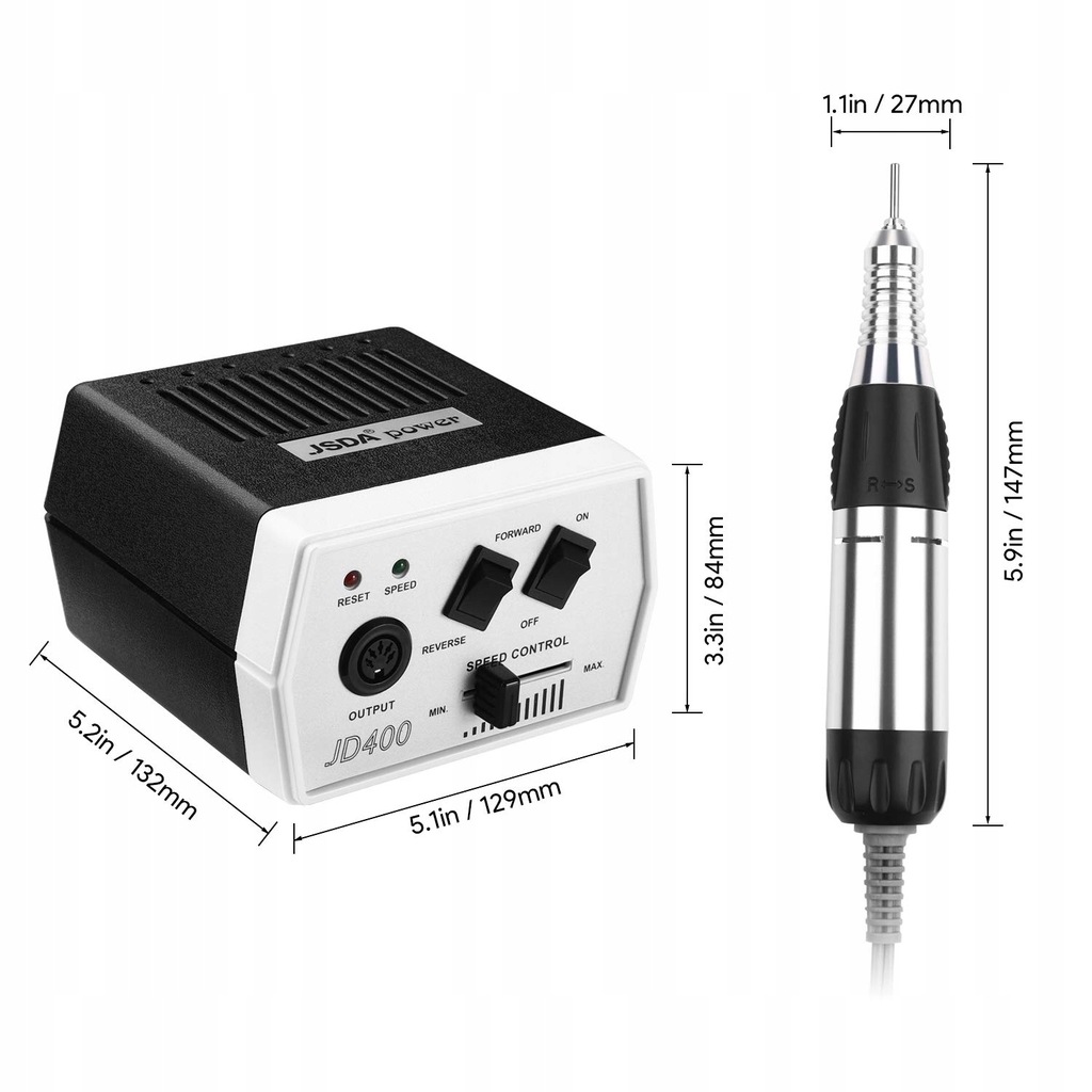 FREZARKA do paznokci Elektryczna JSDA® JD 400, Profi 30000 RPM, zestaw paznokci do paznokci Manicure Pedicure Gelnails, frez do frezu obejmuje 4 załączniki, paznokcie akrylowe, 4 bitów, Remover Corneal, Private & Studio, 2021 Model