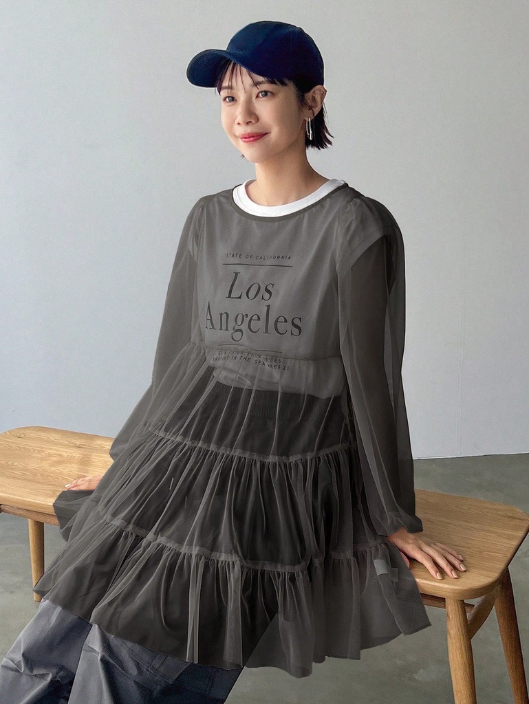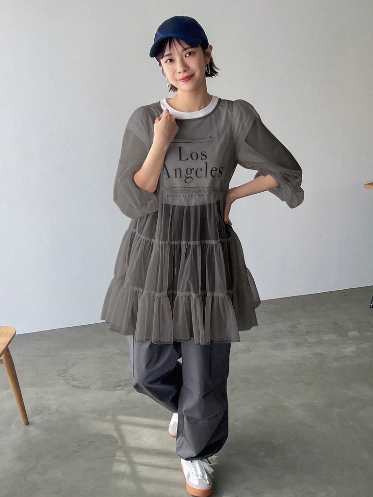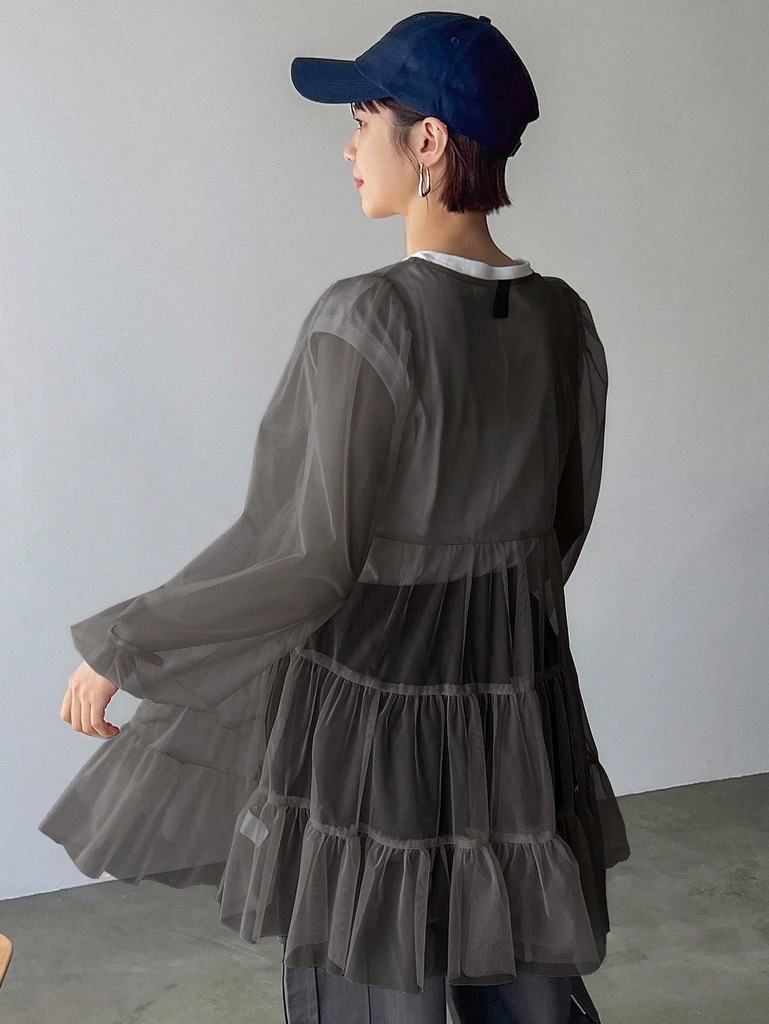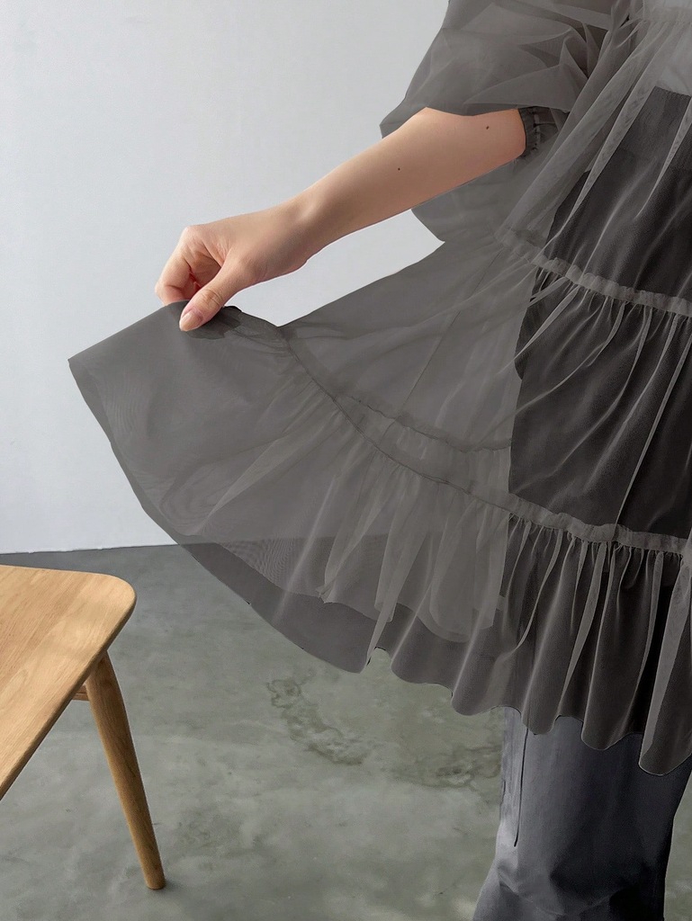 FRIFUL Damska tunika tiulowa jednolity kolor M