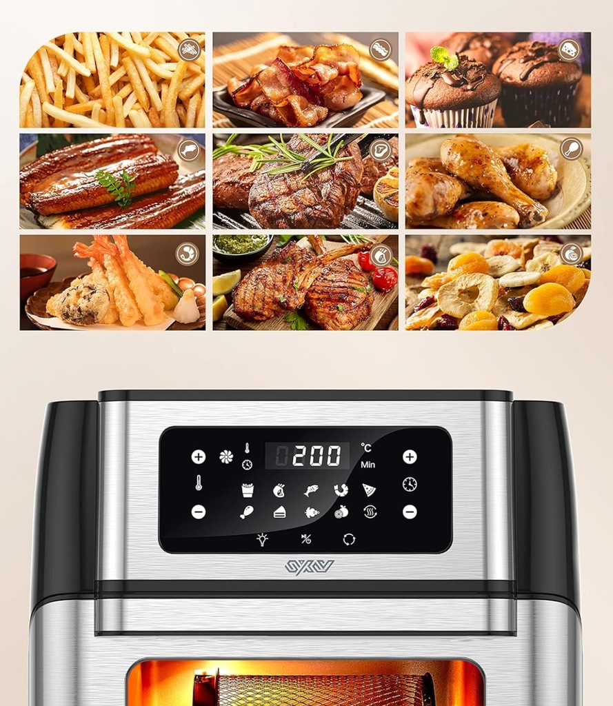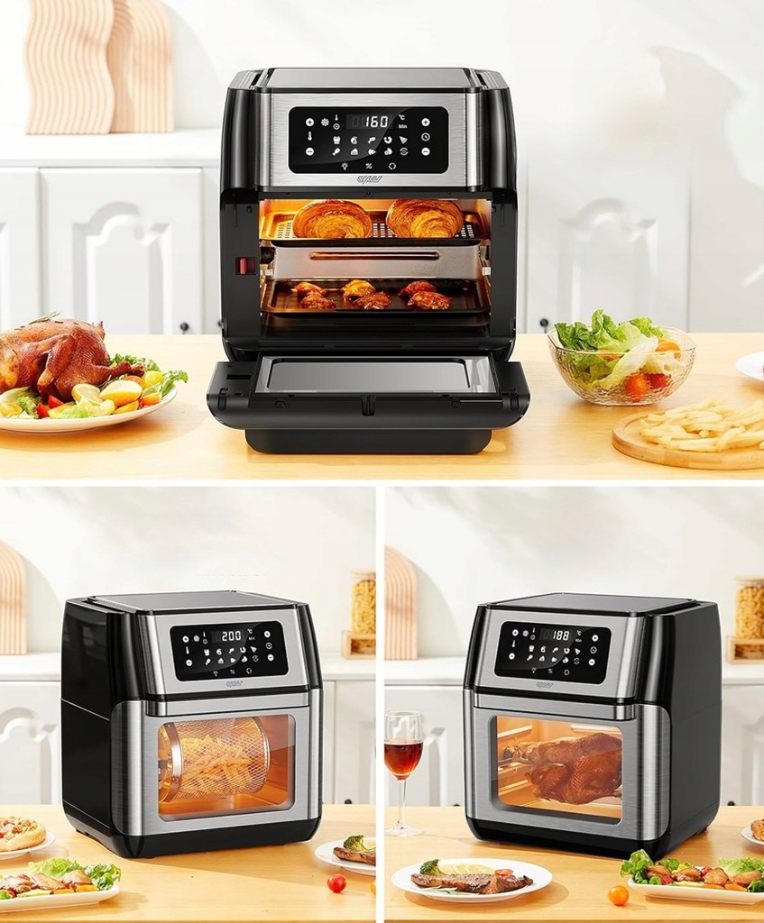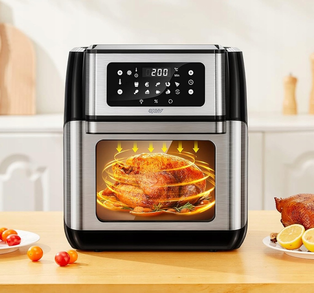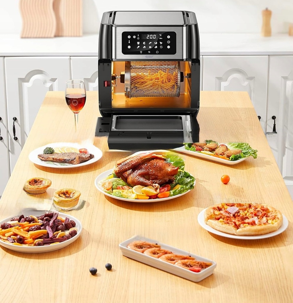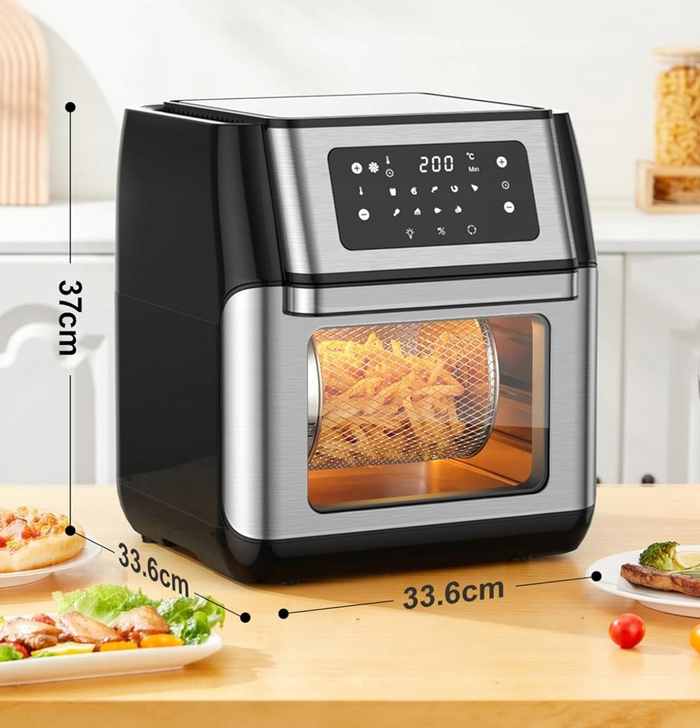 - Funkcje: Airfryer, grill, piekarnik, suszarka do owoców, piec do pizzy