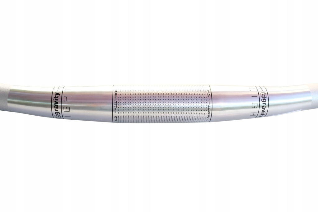 Lekka kierownica o wzniosie 5mm i długości 777mm, z podwójnie cieniowanego aluminium.