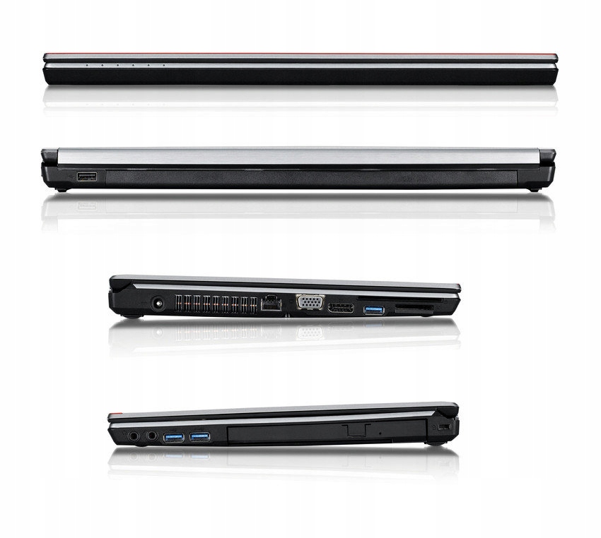 Urządzenie poszczycić się może bardzo szerokim zakresem dostępnych złącz. Rzadko zdarza się, że laptop zaopatrzony jest w komplet najważniejszych złącz do obsługi ekranów zewnętrznych, jednak w tym wypadku użytkownik dostaje do dyspozycji właśnie takie połączenie: DisplayPort, HDMI i VGA (D-Sub). Oprócz nich, znajdują się tu również aż trzy porty USB w standardzie 3.0, pozwalające na superszybki transfer danych, a oprócz nich podstawowe złącza komunikacyjne w postaci dwóch gniazd audio do obsługi słuchawek i mikrofonu, a także port Ethernet do przewodowego połączenia z siecią.