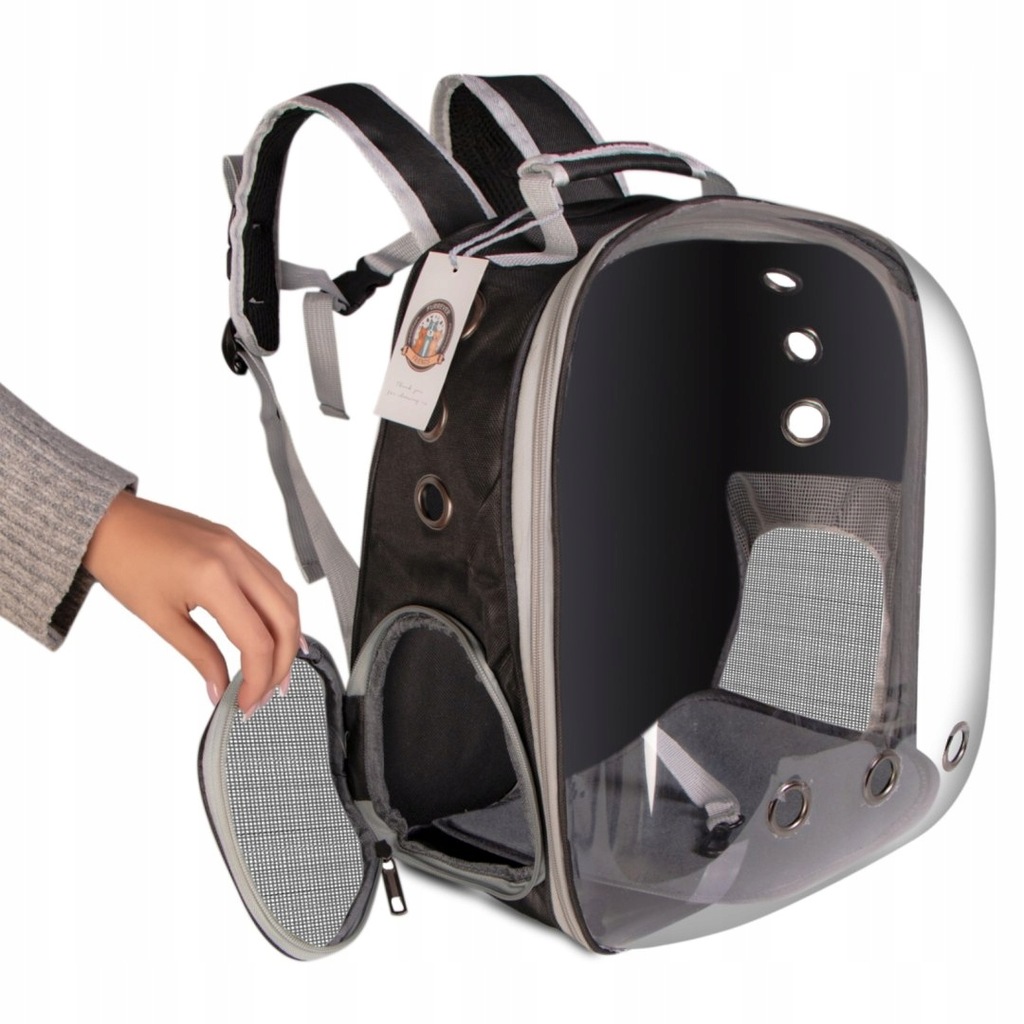 Transporter - plecak dla kota lub psa. Idealny do podróży małych i dużych oraz do wizyty u weterynarza. Duża sztywność w połączeniu z bardzo odpornym materiałem i pancernymi zamkami sprawią, że Twój kot czy pies nie będzie w stanie zniszczyć tego transportera i będzie mógł się cieszyć podróżami bez końca. Otwierana w całości przednia przeźroczysta klapa, kieszonki dodatkowe wentylacje czy mała smycz wewnątrz to tylko niektóre udogodnienia.