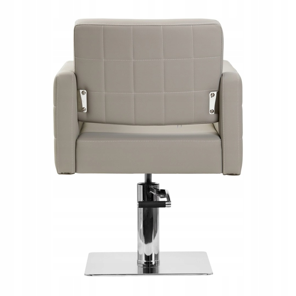 Solidna, płaska podstawa w kształcie kwadratu zapewnia stabilność w trakcie użytkowania. Gładka powierzchnia o lustrzanym wykończeniu nadaje elementowi elegancki wygląd i sprawia, że ten jest łatwy do utrzymania w czystości. Wygodne siedzisko wypełnione trwałą pianką zapewnia wysoki komfort użytkowania, nawet podczas wielogodzinnych zabiegów. Obite skórą syntetyczną podłokietniki z ozdobnymi przeszyciami są ciekawym wizualnie elementem, a co ważniejsze, pozwalają na prawidłowe ułożenie barków klienta. Sprawia to, że nie chowa on głowy w ramionach ani się nie garbi – wyraźnie ułatwia to wykonywanie precyzyjnych zabiegów, w tym strzyżenia. Wyposażenie fotela w mechanizm pełnego obrotu sprawia, że praca fryzjera staje się bardziej efektywna i wygodna.