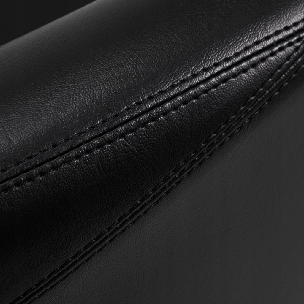 Fotel wypełniony jest pianką, która jest trwała i nie odkształca się, zapewniając komfortowe użytkowanie przez długi czas. Obicie wykonane jest z przyjemnej w dotyku imitacji skóry o specyficznej strukturze. Dzięki użyciu takiego materiału, sprzęt jest odporny na wilgoć, wytrzymały i łatwy w czyszczeniu. Pokrycie w odcieniach czerni oraz ozdobne elementy w barwach srebra nadają mu wyraz ponadczasowej elegancji. Wyróżniające go klasyczne wykończenie sprawia, że będzie doskonale prezentować się w niemal każdej przestrzeni.