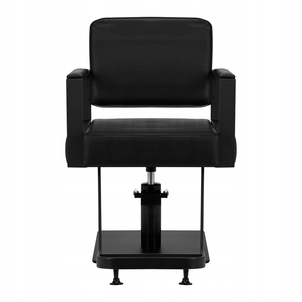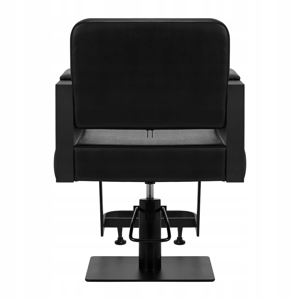 Wyposażenie fotela w mechanizm pełnego obrotu sprawia, że praca fryzjera staje się bardziej efektywna i wygodna. Solidna, płaska podstawa w kształcie kwadratu gwarantuje stabilność w trakcie użytkowania. Matowo wykończona, gładka powierzchnia nadaje elementowi elegancki wygląd i sprawia, że ten jest łatwy do utrzymania w czystości. Wygodne siedzisko z wypełnieniem z pianki zapewnia wysoki komfort użytkowania, nawet podczas wielogodzinnych zabiegów. Geometryczne, częściowo tapicerowane podłokietniki pozwalają na prawidłowe ułożenie barków klienta – sprawia to, że nie chowa głowy w ramionach ani się nie garbi – wyraźnie ułatwiając wykonywanie precyzyjnych zabiegów, w tym strzyżenia.