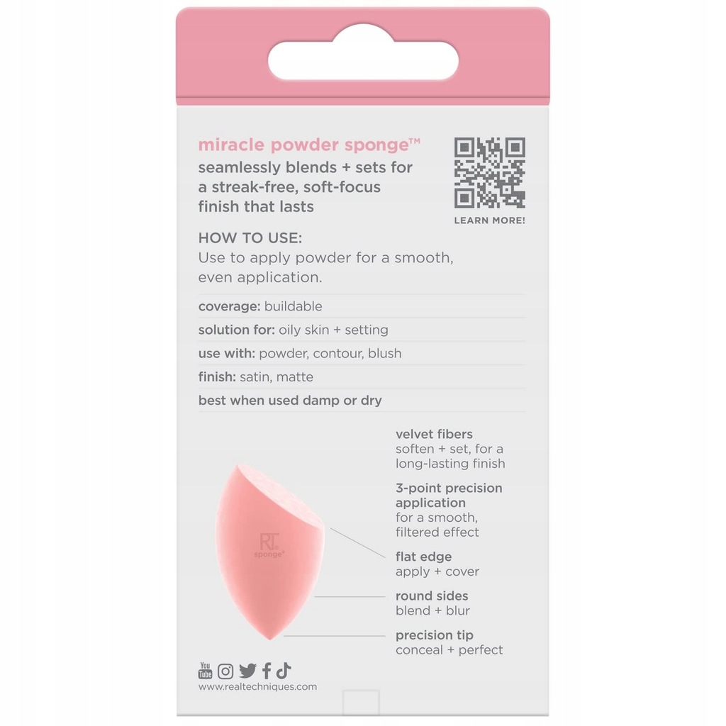 Miracle Powder Sponge to rewolucyjna gąbka do aplikacji podkładu od marki Real Techniques. Dzięki gąbce równomiernie rozprowadzisz podkład nie pozostawiając nieestetycznych plam i smug.