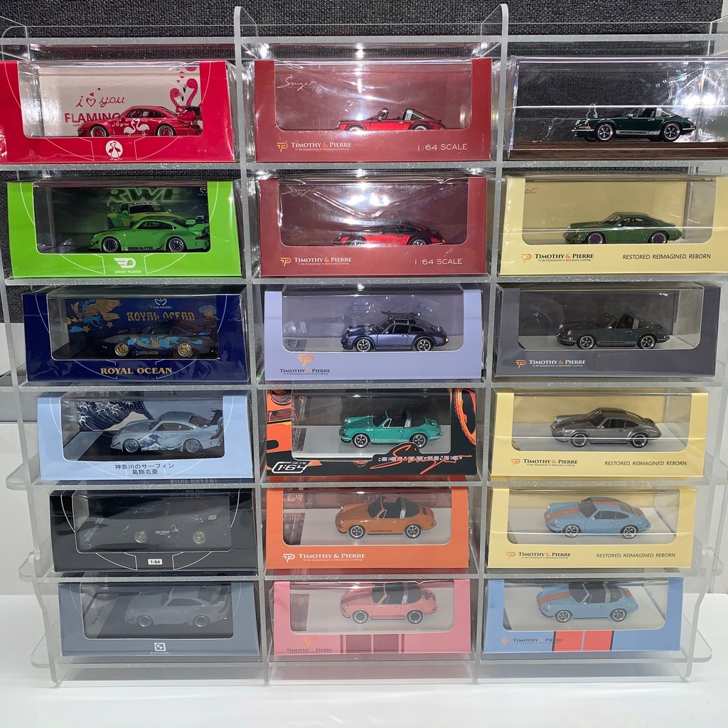 Sprzedam gablotkę na modele w skali 1:43 (lub 1:64) przeznaczoną na 18 - 36 modeli (w zależności od skali i ustawienia). Gablota posiada przednią płytę zabezpieczającą modele przed zakurzeniem.