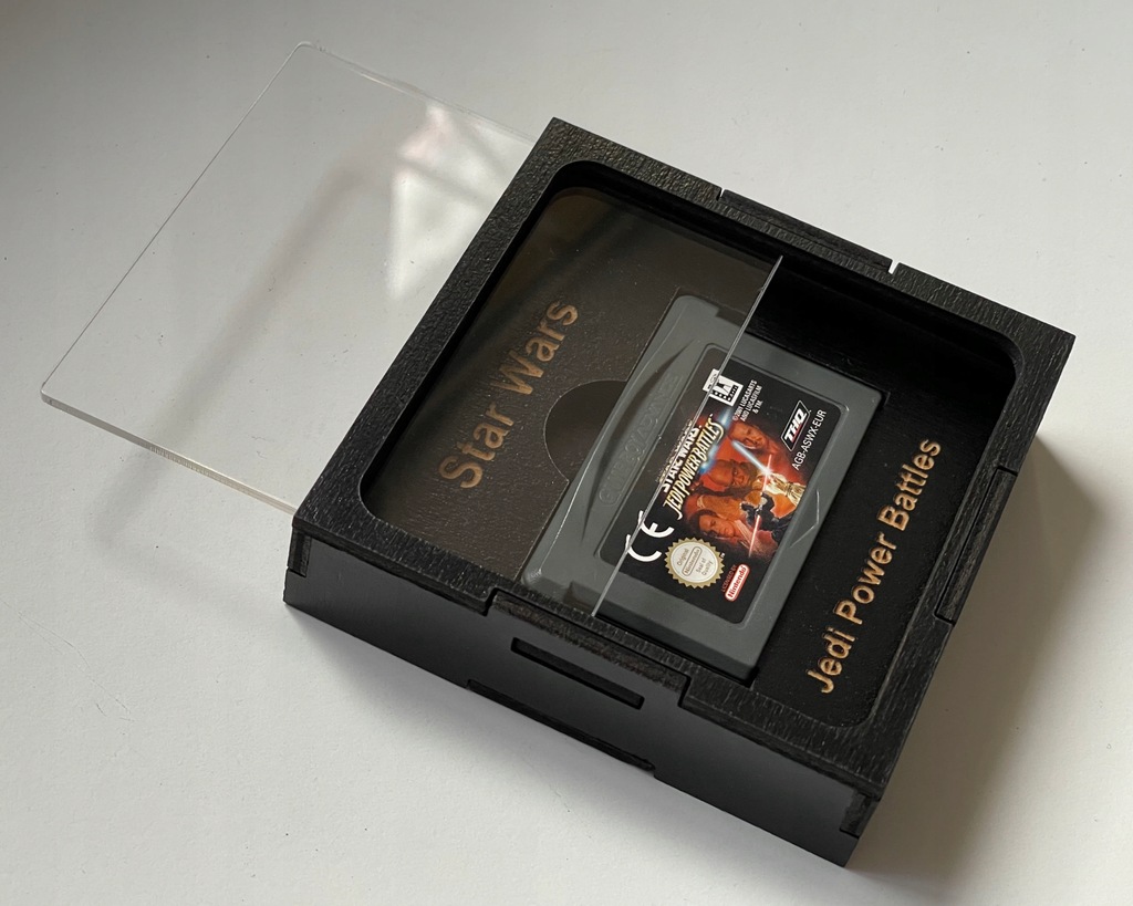 Drewniane gablotki/pudełka do ekspozycji najcenniejszych kartridży z grami z konsoli Nintendo Game Boy Advance. Nasze gablotki można postawić na półce lub nawet powiesić na ścianie przy użyciu samoprzylepnych rzepów, dzięki czemu staną się ozdobą niejednej kolekcji gier retro.