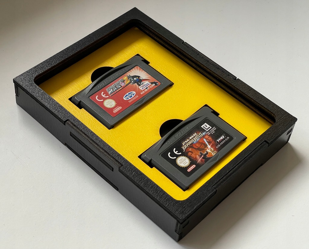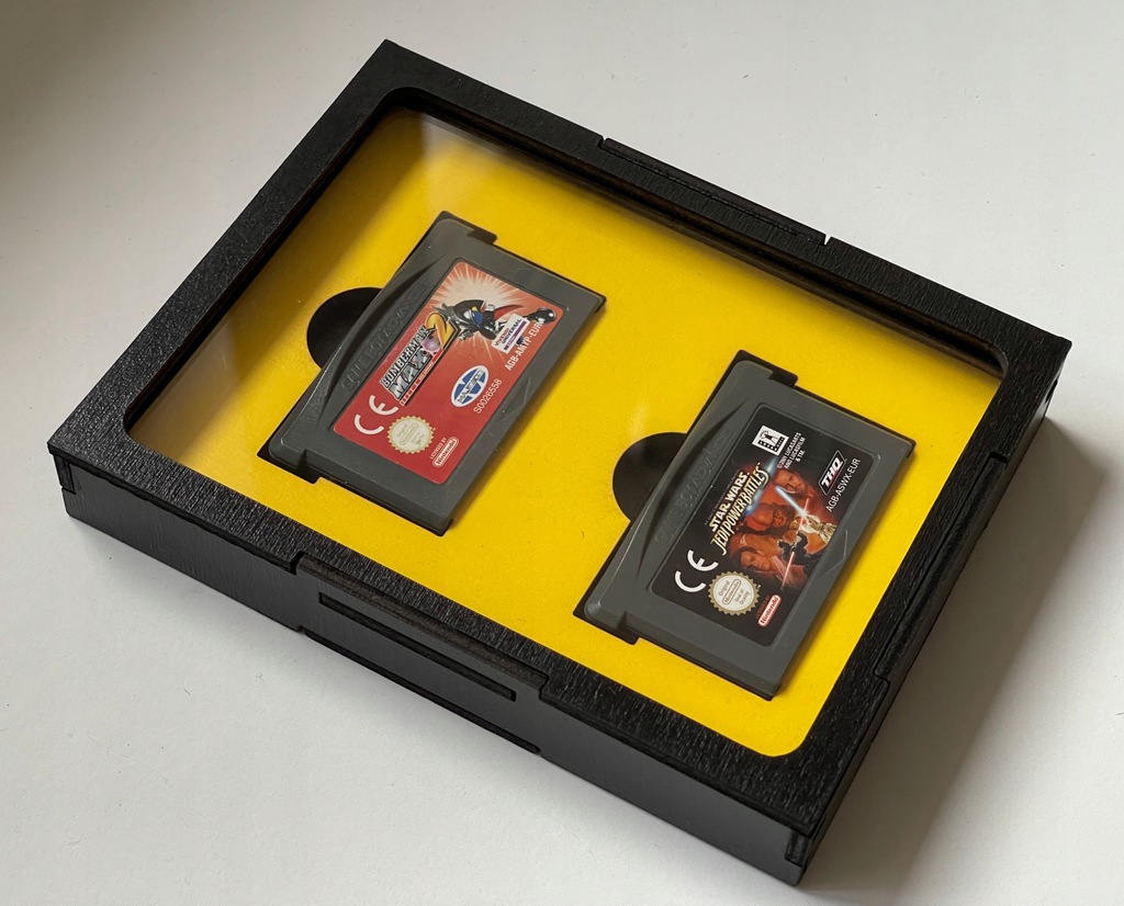Drewniane gablotki/pudełka do ekspozycji najcenniejszych kartridży z grami z konsoli Nintendo Game Boy Advance. Nasze gablotki można postawić na półce lub nawet powiesić na ścianie przy użyciu samoprzylepnych rzepów, dzięki czemu staną się ozdobą niejednej kolekcji gier retro.