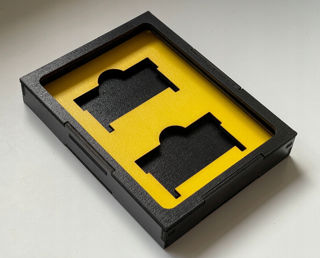 Na tej aukcji kupujecie Państwo gablotkę z wkładką w kolorze żółtym. Na pozostałych aukcjach znajdziecie Państwo pudełka na inne kartridże, w innych kolorach oraz personalizowane przez dodanie graweru z nazwą danej gry.