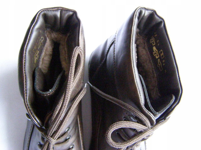 BUTY USZYTE ZOSTAŁY Z NAJLEPSZEJ LICOWEJ SKÓRY W KOLORZE BRĄZOWYM NA ODPORNEJ NA ŚCIERANIE PODESZWIE Z NATURALNEGO KAUCZUKU. W ŚRODKU WEŁNIANA WKŁADKA I WYŚCIÓŁKA Z OWCZEGO FUTRA. WYGODNY 5cm OBCAS.
