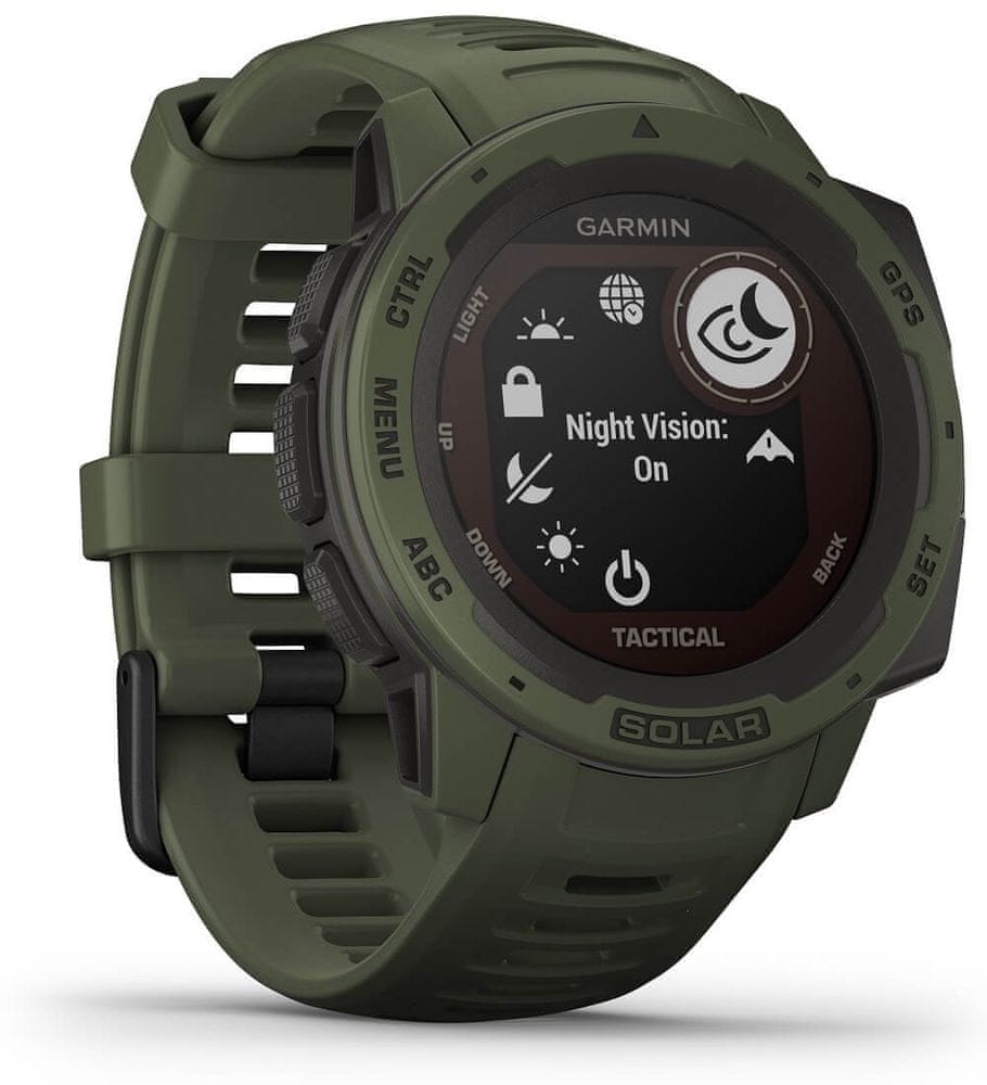 Garmin Instinct® Solar Tactical Edition 010-02293-04 to idealny sprzęt dla fanów aktywności taktycznych i outdoorowych. Koperta wykonana z wysokiej jakości tworzywa uzupełnionego szklanym włóknem jest umocowana na wygodnym, silikonowym pasku w kolorze zielonym. Wyświetlacz został zabezpieczony szkiełkiem Corning Gorilla, dlatego produkt jest odporny na uszkodzenia zewnętrzne. Posiada on wiele praktycznych funkcji, m.in. GPS, kompas, tryb nocny i funkcje przeznaczone dla biegaczy. Urządzenie jest objęte dwuletnią gwarancją, ponadto zapakowano je w oryginalne pudełko.