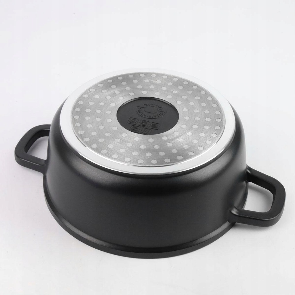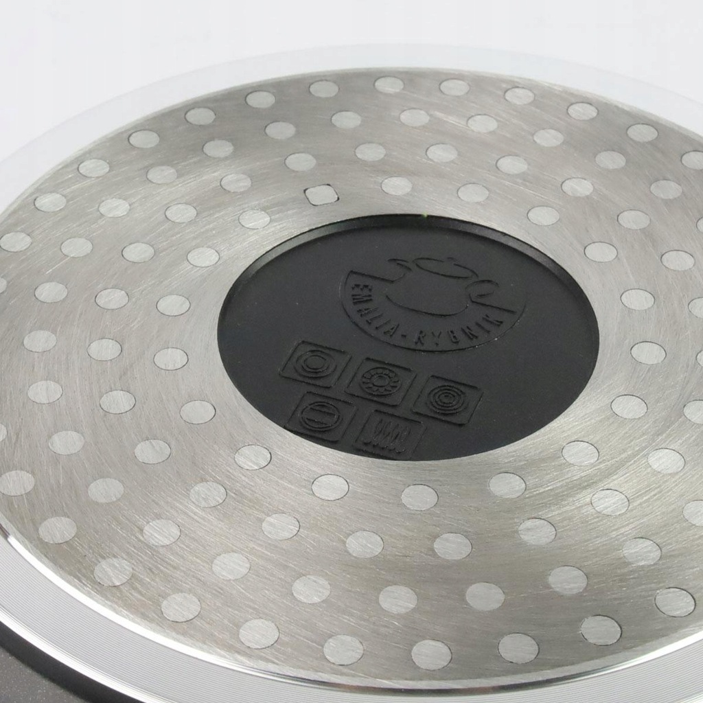 Dno wyposażone w dysk który umożliwia korzystanie z garnka także na kuchenkach indukcyjnych oraz pozwala na równomierne rozłożenie ciepła.