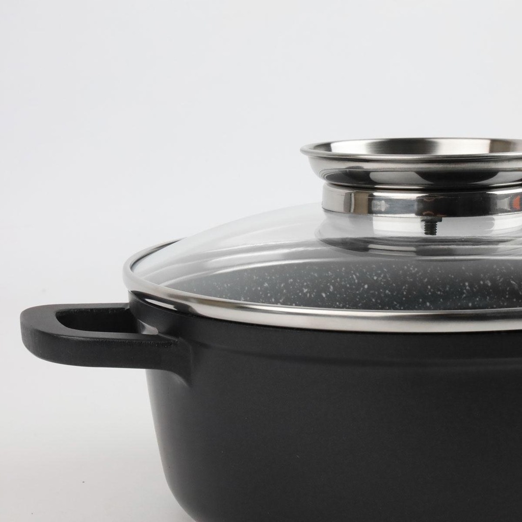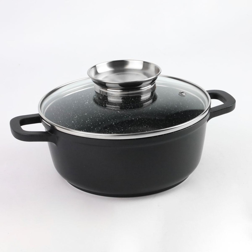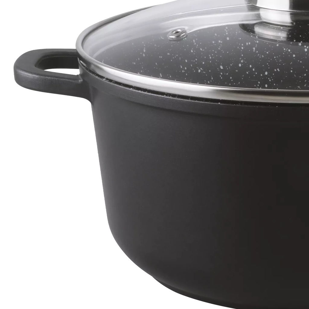 Solidny i funkcjonalny garnek ze szklaną pokrywą o pojemności 2,3l. Wykonany z aluminium oraz pokryty nieprzywierającą powłoką GREBLON C2. Wielofunkcyjny, dzięki niemu przygotowywanie ulubionych potraw jest szybkie, łatwe i przyjemne.