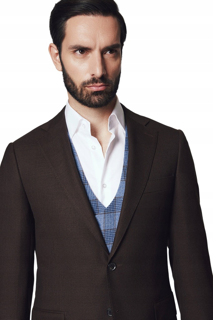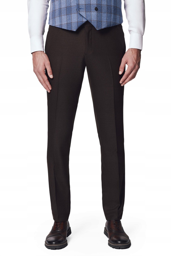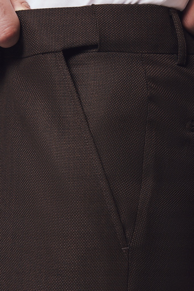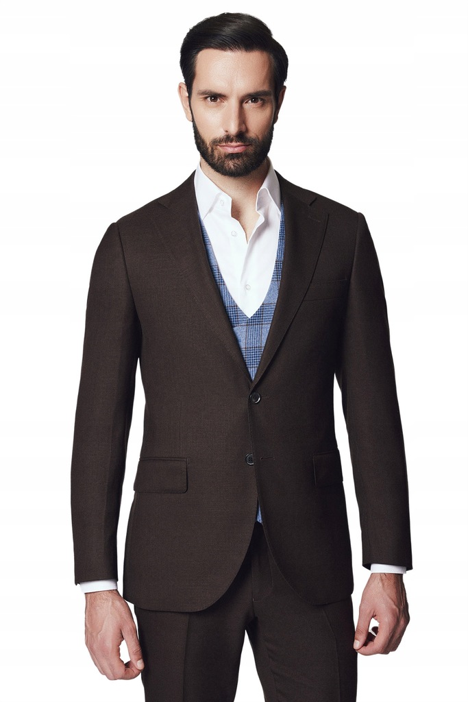 Świetnie skrojony, wełniany garnitur zawsze będzie dobrym wyborem – na lato, zimę, uroczystość rodzinną albo spotkanie biznesowe lub jako ubiór do pracy. Brązowy model Flengi uszyliśmy z tkaniny 100% wełny 140’s w przewiewnym splocie. Składa się on z marynarki jednorzędowej na dwa guziki i spodni bez zaszewek, delikatnie zwężanych ku dołowi. Marynarka posiada proste klapy, dwie kieszenie z patkami, kieszonkę piersiową oraz wytrzymałe guziki z żywicy galanteryjnej. Flengi pochodzi z kolekcji LANCERTO Comfort Plus, specjalnej linii garniturów, uszytych w wygodnym kroju z naturalnej tkaniny 100% wełny z efektem natural stretch i powłoką hydrofobową, która zapobiega wnikaniu wody w strukturę tkaniny. Co więcej ten model posiada specjalny elastyczny pas, który pozwala na zmianę obwodu aż o 3 rozmiary – świetnie rozwiązanie, gdy schudniesz lub przybierzesz kilka kilogramów. Dzięki efektowi natural stretch tkanina rozciąga się i powraca do pierwotnego kształtu, pracując razem z ruchami ciała. Guziki sygnowane logo marki, wykonaliśmy z odpornej na pranie chemiczne żywicy galanteryjnej.