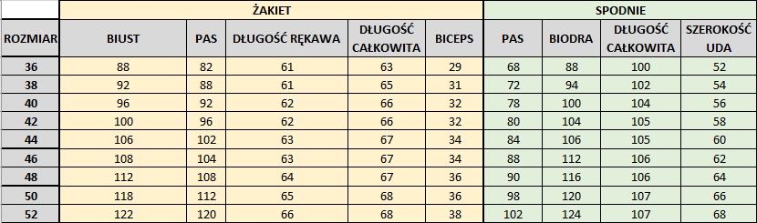 Prosimy o zapoznanie się z tabelą rozmiarów.