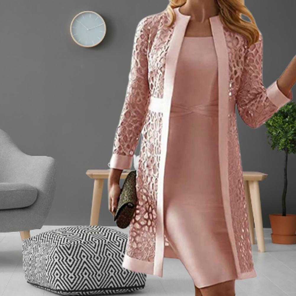 Główny skład tkaniny: włókno poliestrowedługość spódnicy: spódnica midiDługość rękawa: długi rękawTyp spódnicy: spódnica z wysokim stanemTyp kołnierza: szyja w kształcie litery UTyp stylu: temperamentny dojeżdżający do pracy
