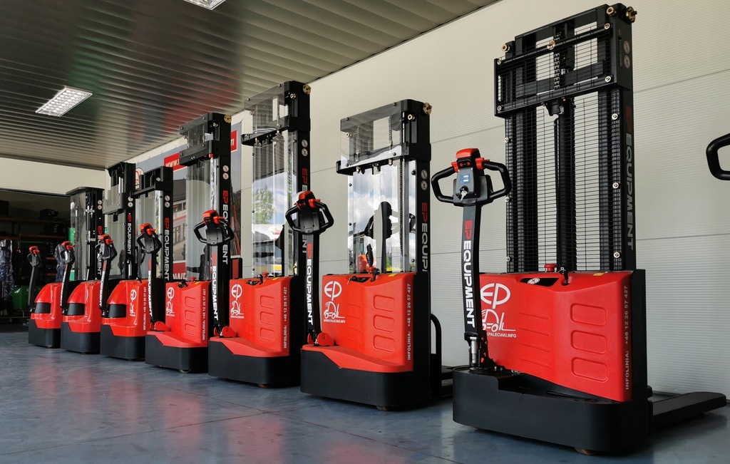 - Sprzedaż nowych wózków EP Equipment i Heli,