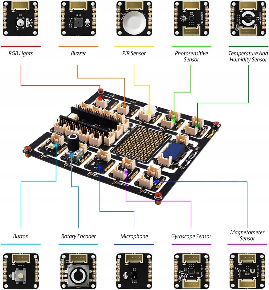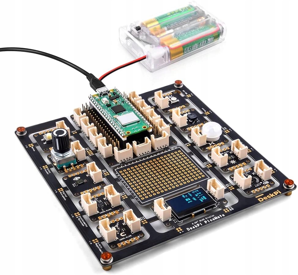 Wbudowane złącze baterii do projektów w podróży; biblioteki MicroPython obsługują wszystkie moduły