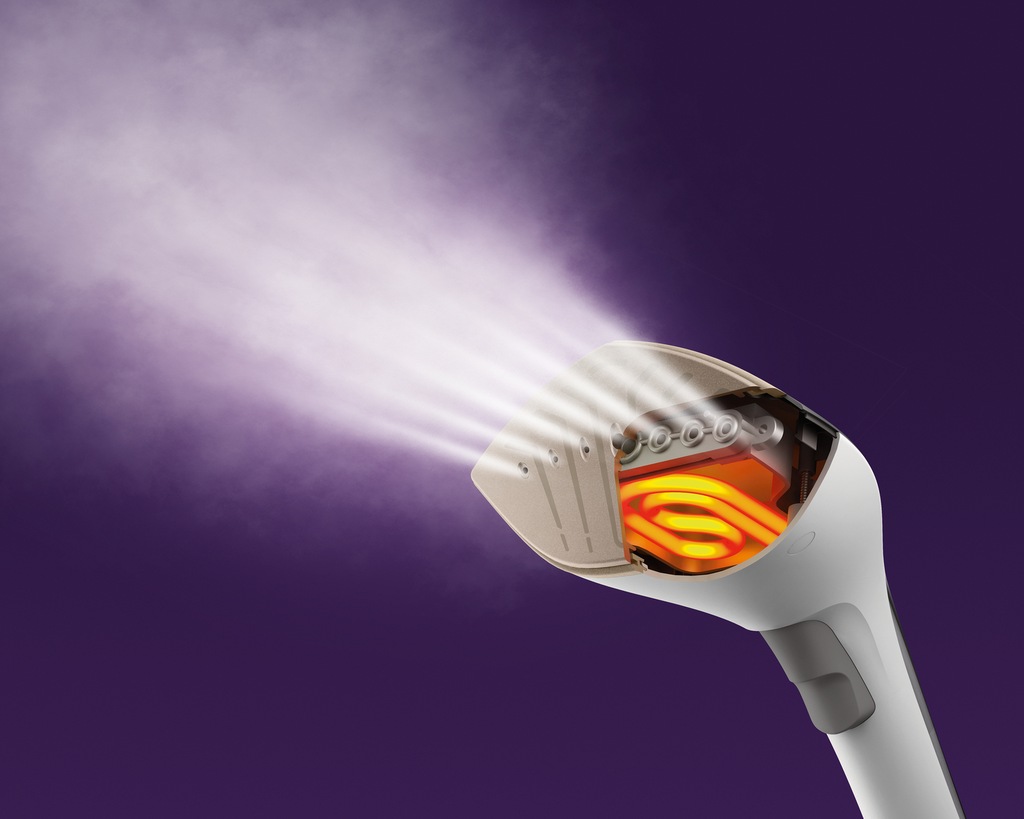 Technologia podwójnego ogrzewania pozwala na przenikanie pary o dużej mocy, aby wygładzić wszystkie zagniecenia, zapewniając doskonały wygląd odzieży.