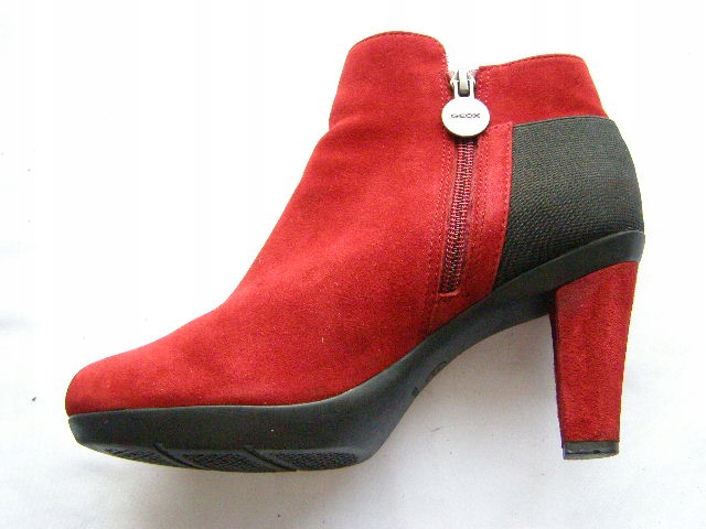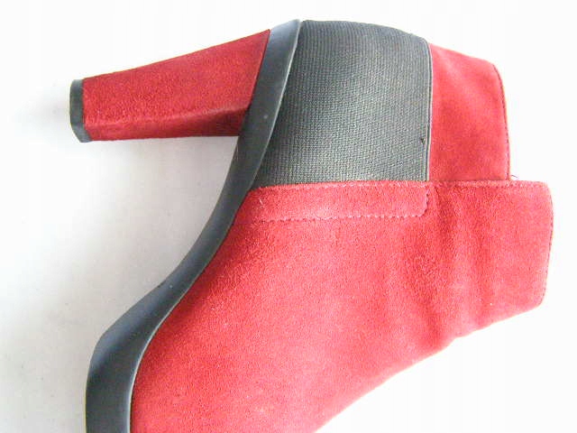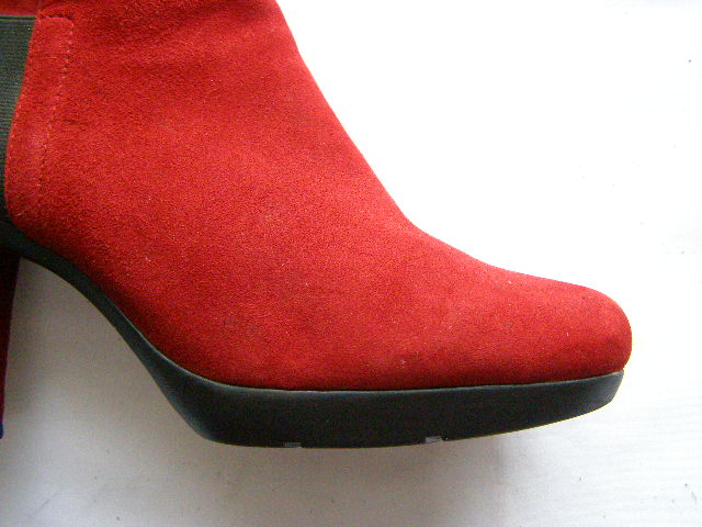 BOTKI USZYTE Z NAJLEPSZEJ JAKOŚCI CIELĘCEJ ZAMSZOWEJ SKÓRY W KOLORZE CZERWONYM NA ELEGANCKIEJ I ODPORNEJ NA ŚCIERANIE PODESZWIE Z KAUCZUKU I WYGODNYM OBCASIE WYSOKOŚCI 9cm.SKÓRZANA WKŁADKA I WYŚCIÓŁKA.