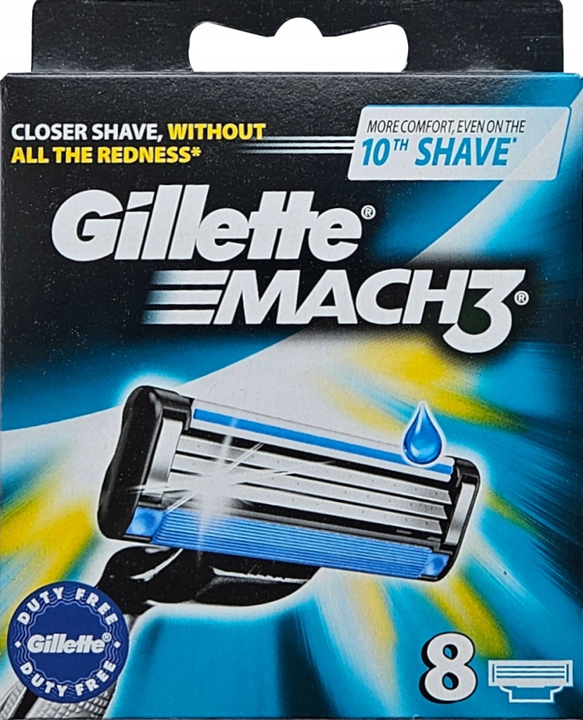 Wymienne ostrza Gillette Mach 3 zostały zaprojektowane z myślą o standardowym, dokładnym goleniu. Wyposażone w trzy mocniejsze niż stal ostrza, które pozostają ostre na dłużej, umożliwiając użycie tego samego ostrza nawet do 15 razy. Posiadają nawilżający pasek ułatwiający poślizg po skórze.