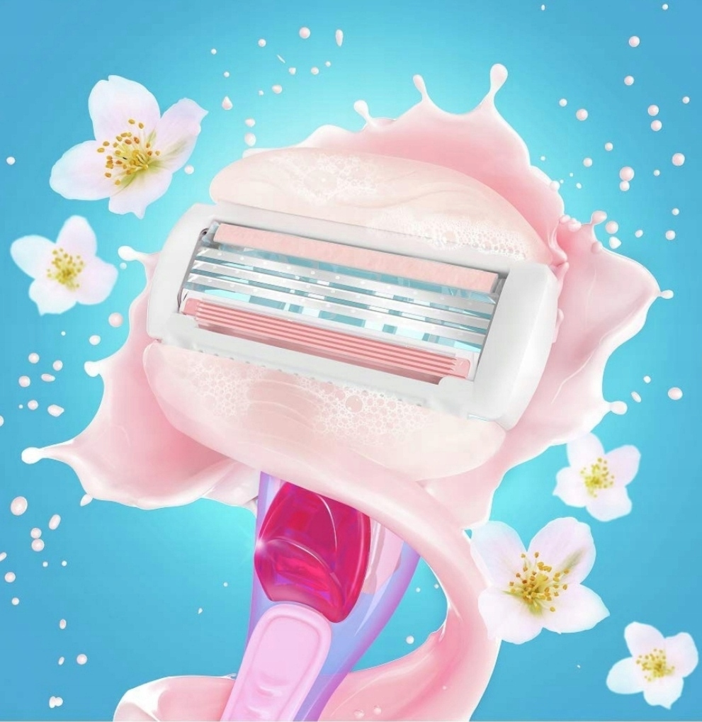 Maszynka do golenia dla kobiet z 3 dopasowującymi się do kształtów ciała ostrzami, zapewniającymi gładkie golenie