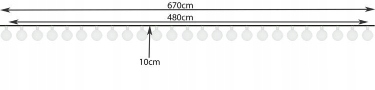 - 50 KULEK W ZESTAWIE ? girlanda solarna posiada aż 50 świecących jasnym światłem kulek w zestawie, a odległość między poszczególnymi kulkami wynosi 10 cm.