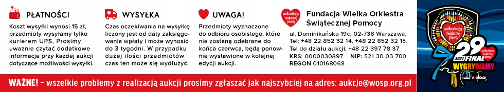 Zwróciliśmy się ze specjalną prośbą do ludzi z życia publicznego, muzyków, aktorów, sportowców, polityków, a także tych, którzy dali się poznać dzięki swojej pracy na rzecz innych, o przekazanie jakiegoś przedmiotu na rzecz 29. Finału WOŚP. Gramy pod hasłem: „Finał z głową – dla laryngologii, otolaryngologii i diagnostyki głowy”.