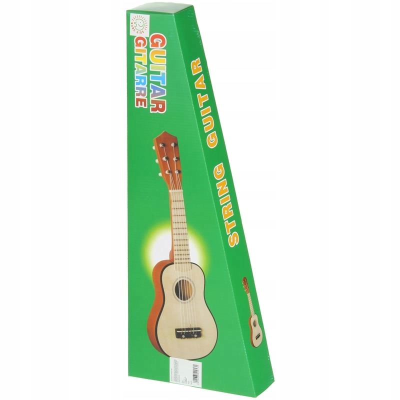 Dziecko już w pierwszych latach życia wykazuje zainteresowanie zabawkami grającymi, tańczy, śpiewa, próbuje grać na prostych instrumentach. Obecność muzyki w rozwoju dziecka ma zdecydowanie pozytywny wpływ. Gitara to idealna propozycja dla najmłodszych muzykantów. Instrument wykonany jest z drewna, ma 6 metalowych strun różnych grubości. Zabawka jest odzwierciedleniem prawdziwej klasycznej gitary co sprawi, że mały artysta chętniej rozpocznie naukę.