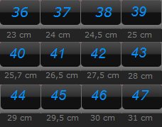 Buty dostępne są w podanych rozmiarach na pozostałych naszych aukcjach.