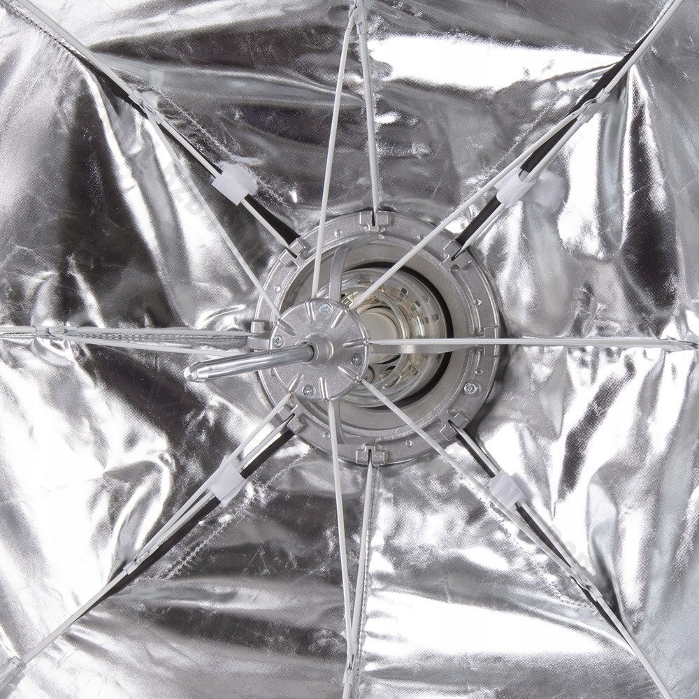 Szybko składany softbox oktagonalny ze srebrnym odbłyśnikiem o średnicy 120 cm, wyposażony w podwójny dyfuzor, mechanizm szybkiego rozkładania Easy Fold oraz pokrowiec.