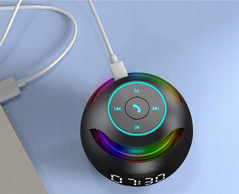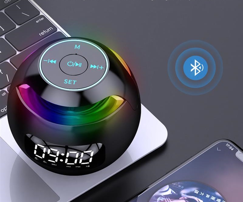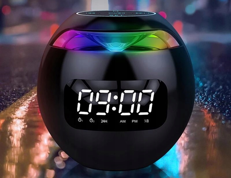 Głośnik mini-piłka, bezprzewodowy głośnik bluetooth z wyświetlaczem LED, budzikiem funkcja radia FM
