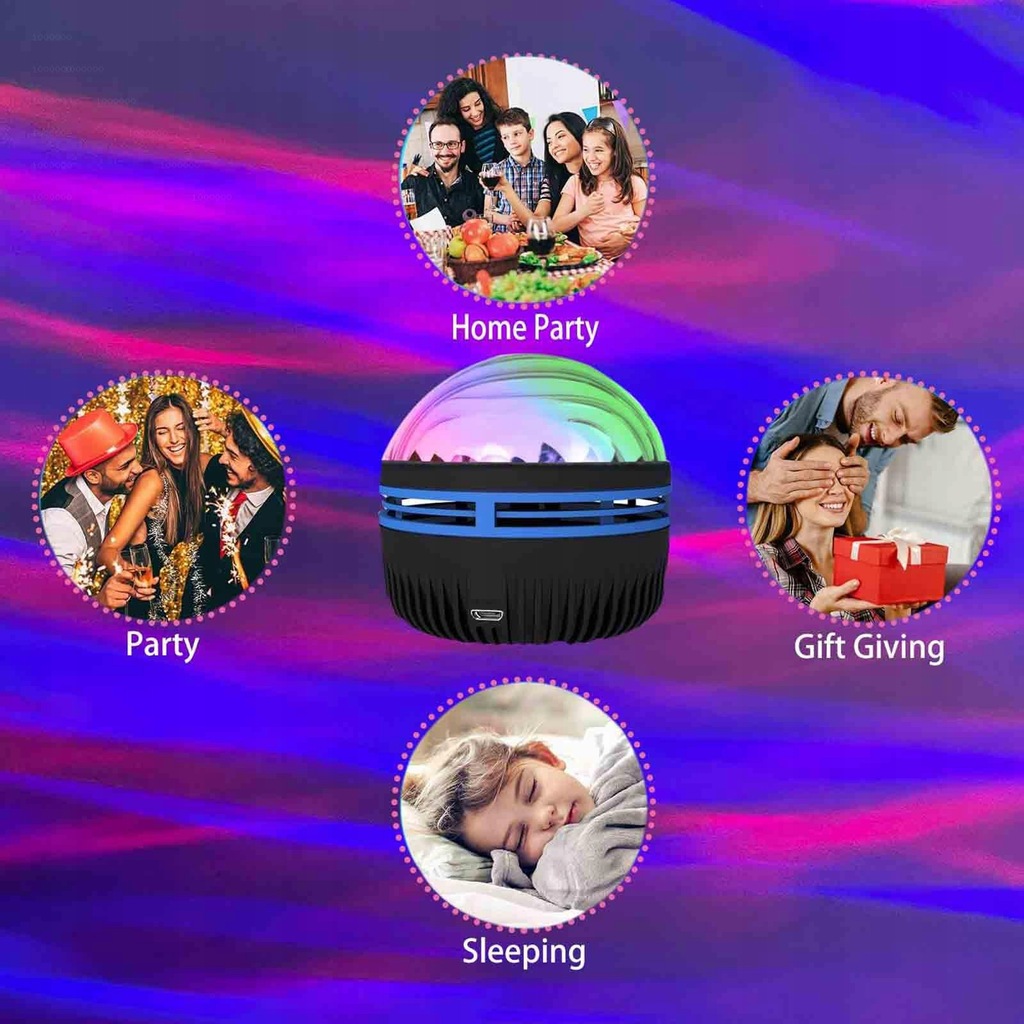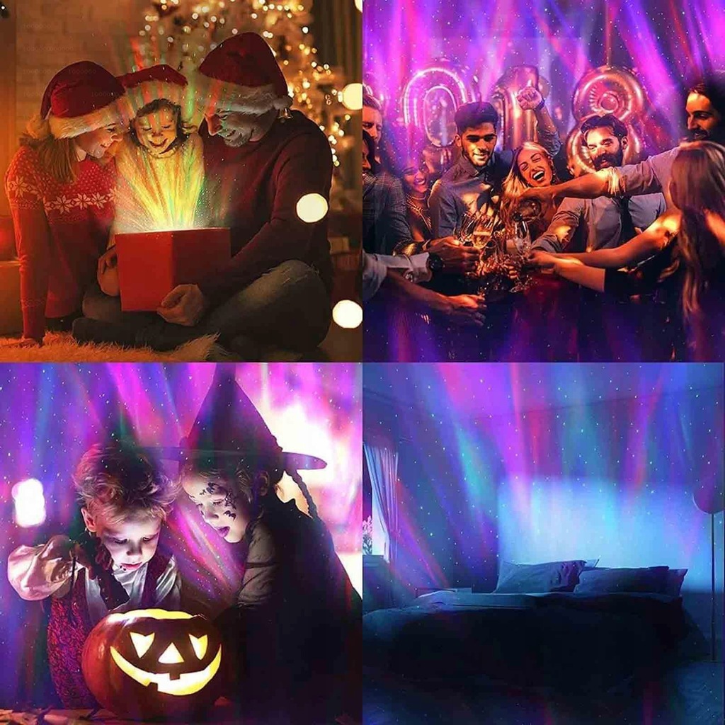 3. Music Aynchronization: Our LED Wave Projector has a cool feature where you can synchronize the projection with the music and move to the beat, creating a fun and vibrant party atmosphere.