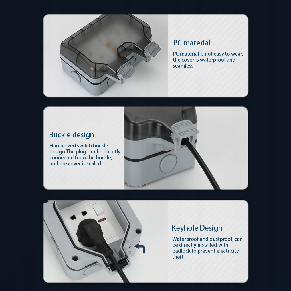 Odpowiednie miejsca: To wodoodporne gniazdko dobrze pasuje do ogrodu, podwórka, dziedzińca , garaż, pole namiotowe i nie tylko.