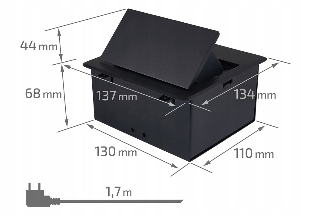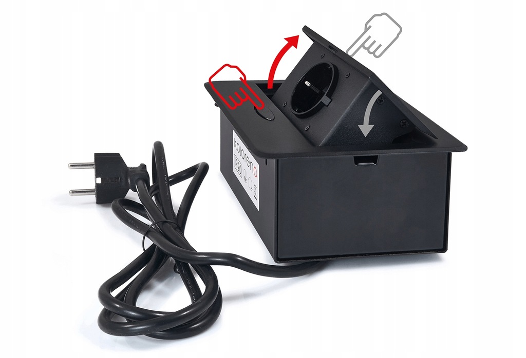 ✔ gniazdo jest schowane i może być umieszczone w blacie biurka lub kuchennym, to rozwiązanie ułatwia dostęp do gniazda, jednocześnie utrzymując porządek i estetykę miejsca pracy
