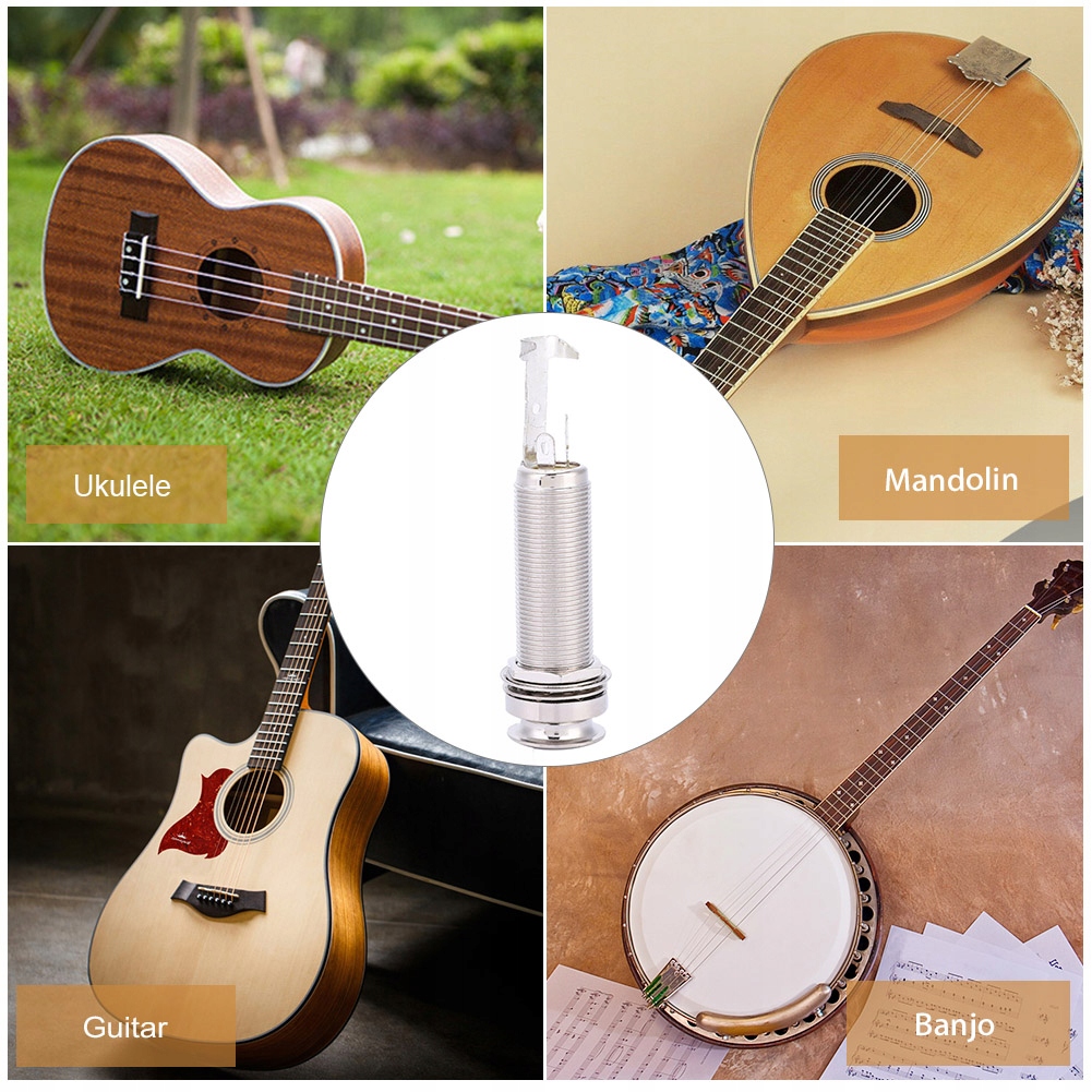 Gniazdo jack z końcem służy do wbudowanego przetwornika gitary akustycznej, ukulele, banjo, mandoliny i innych instrumentów, do montażu i wymiany.
