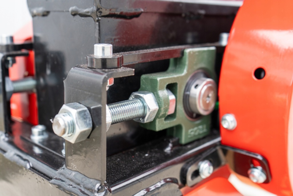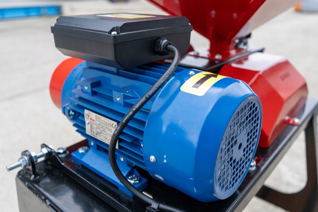Śrutownik posiada trwałą, a zarazem prostą konstrukcję, co wpływa na długą żywotność urządzenia i łatwość użytkowania. Wyposażony jest w kosz zasypowy z blokadą pozwalającą na regulację podawania materiału rozdrabnianego oraz wylot ułatwiający zbieranie materiału przerobionego z możliwością wysypu do kosza lub do zawieszonego na haczykach worka. Dwa stalowe walce zgniatające zapewniają dużą wydajność i niezawodność. Za napęd odpowiada jednofazowy silnik elektryczny (230V) o mocy 1.5 kW. Napęd przenoszony jest poprzez 2 paski klinowe na bębny zgniatające.