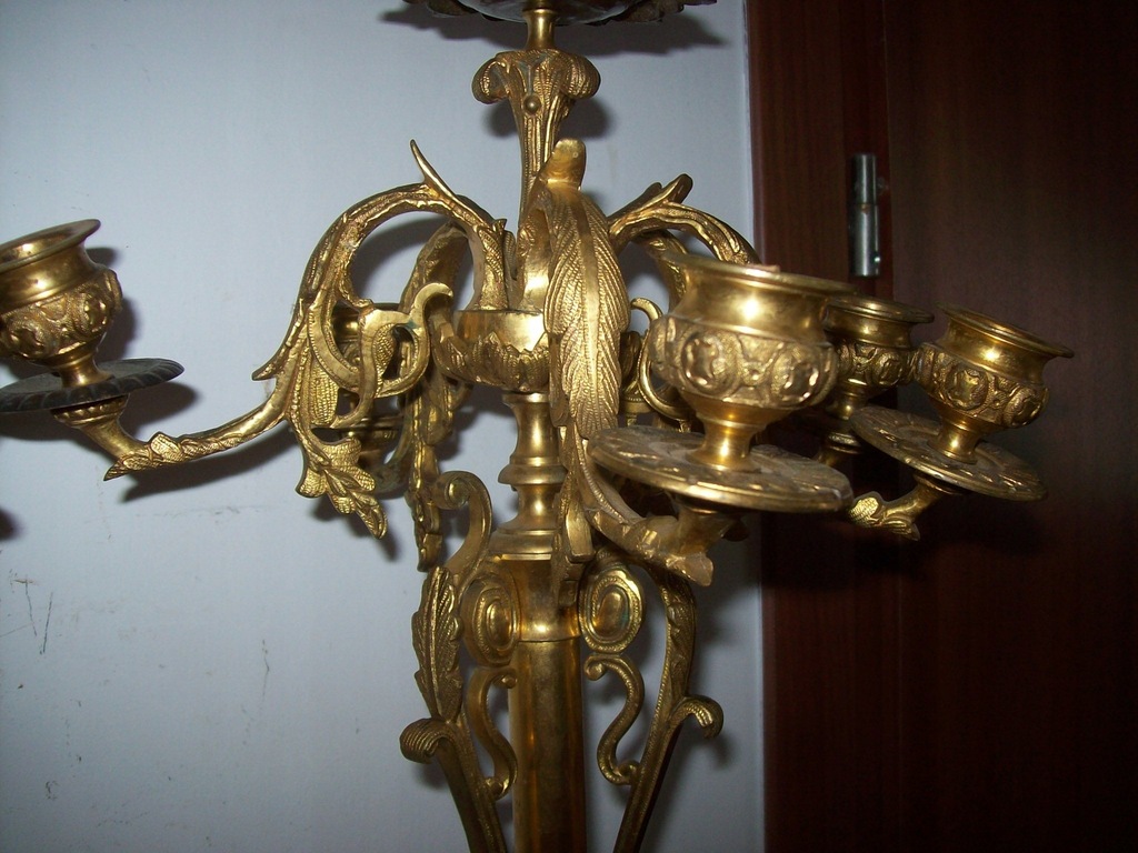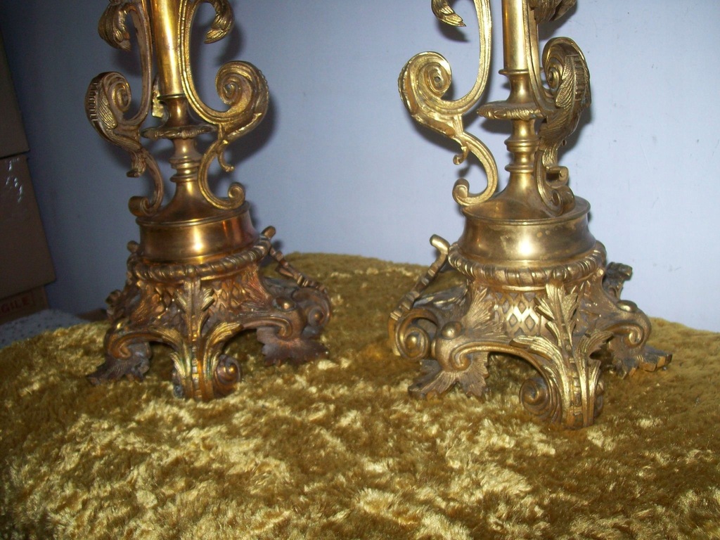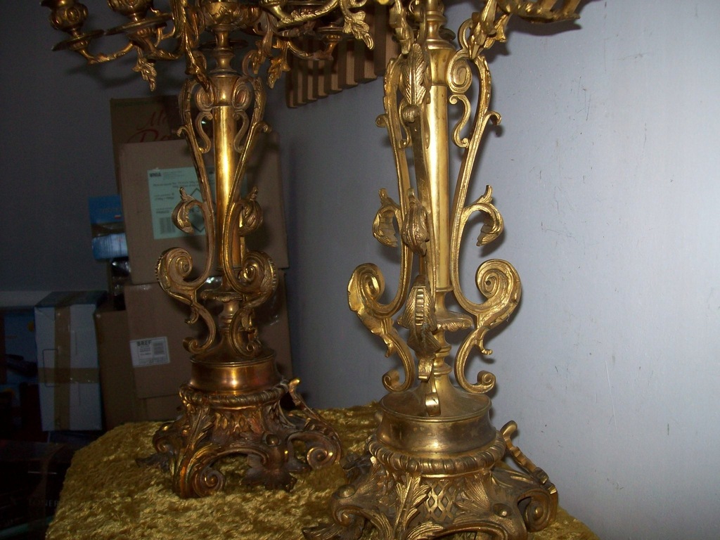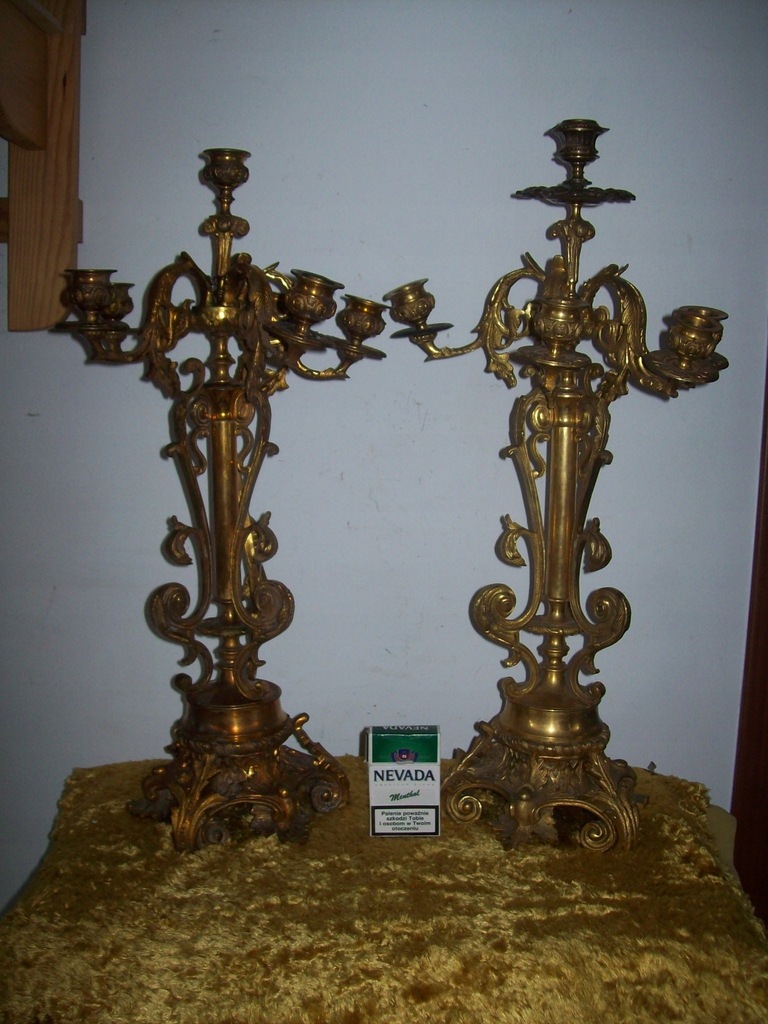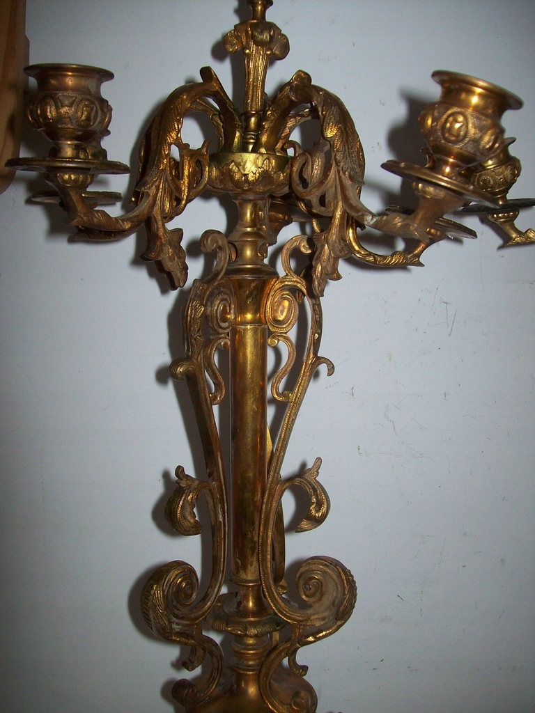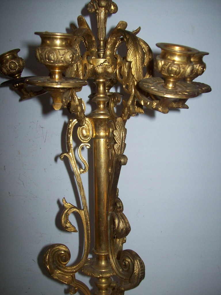 --WRAZIE PYTAŃ--MOGĘ ZROBIĆ DOBRĄ CENĘ ---NA--KUP-TERAZ ---OKAZJA-----Sprzedaje orginał 100% muzealna rzecz---z pierwszej polowy XIXw dwa bardzo duze kandelabry szescioramienne wykonane z brązu ogniowo zloconego--zlotem dukatowym-PRZEPIEKNA ROBOTA--IDEALNA CYZELKA--- o bardzo ciekawej formie --stan dobry--wysokosc 56 cm---podstawa 20 cm--waga jednego ok, 6-8 klg przedmiot nie czyszczony posiada oryginalna patyne --wymagaja jedynie przeczyszczenia i usztywnienia--jedna profitka dobierana------caly urok najlepiej pokazuja zdjecia---perelka do kolekcji---MOGE WYSLAC ZA POBRANIEM--W razie pytań ?---694--35--42--59---Pytanie do sprzedajacego --NIZEJ------Zapraszam na moja stronę gdzie sprzedaje podobne przedmioty,,